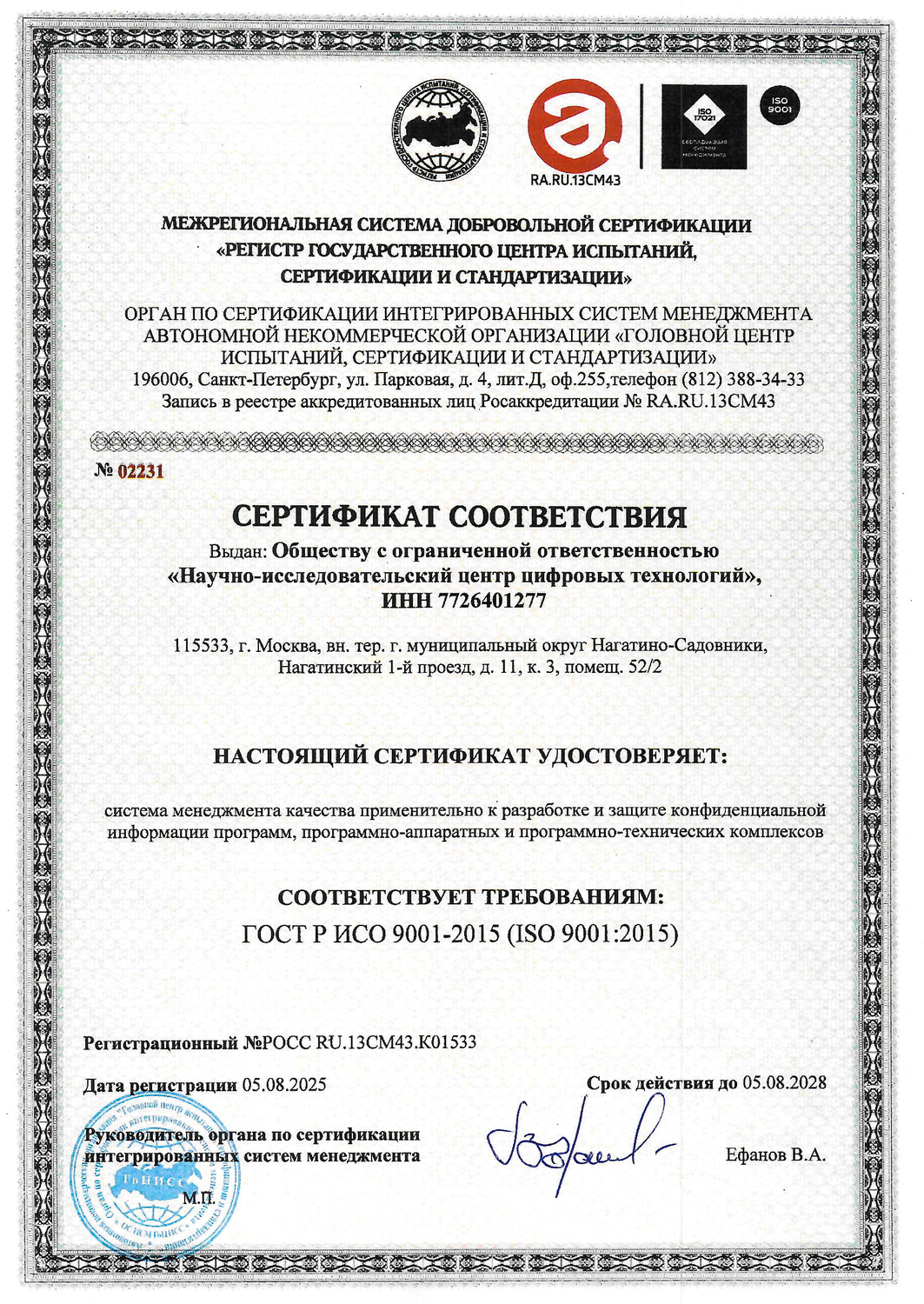 © ООО "Научно-исследовательский центр цифровых технологий" (ООО НИЦ ЦТ) — российский разработчик операционных систем, программного обеспечения и программно-аппаратных комплексов
